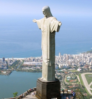 今天我们将乘车游览位于海拔 709 米高的【耶稣山】,这里是观光里约最理想的地方。山上的巨型基督像,是该市的标志,也是 2007 年新票选的世界七大奇迹之一,是一座装饰艺术风格的大型耶稣基督雕像,也是世界最闻名的纪念雕塑之一,在这里,无论何时何地都能将里约市一眼望尽;另外,在耶稣山上还可远眺建于 1968 年的南美最长的【尼特罗伊跨海大桥】;午餐特别享用巴西烤肉餐,随后外观号称可以容纳 20 万人的世界最大的足球场【马
