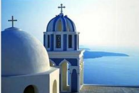 乘船赴圣托里尼岛(这是一个充满爱琴海古文明及浪漫美景的岛屿。在公元前的火山爆发中,把小岛切成弦月型,吸引了现在前来寻找消失的亚特兰提斯大陆的考古人潮及捕捉爱琴海特有白色小教堂配上蓝天碧海的绝佳画面)